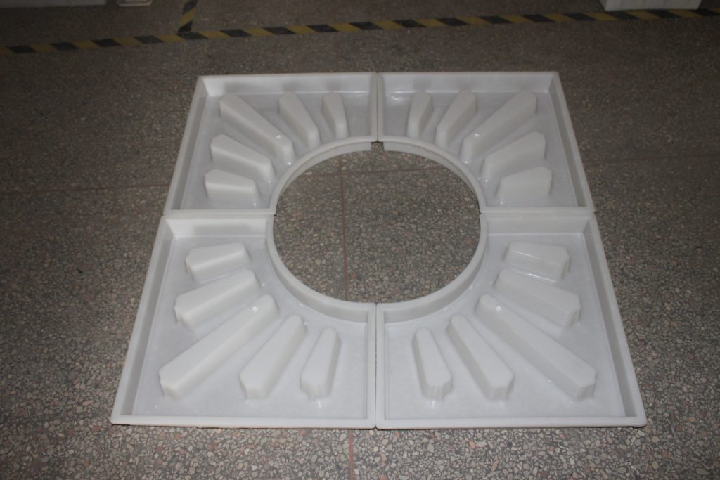 太陽(yáng)型水泥樹(shù)圍模具主要采用了PP聚丙烯塑料為原料,經(jīng)注塑加工完成。主體結(jié)構(gòu)由四塊拼接組成,由于塑料模具表面由類(lèi)似陽(yáng)光一樣的線(xiàn)條設(shè)計(jì),遂得名太陽(yáng)型樹(shù)圍模具。不要小看這一條條的線(xiàn)條設(shè)計(jì),除了在美觀結(jié)構(gòu)上有所表現(xiàn),最為關(guān)鍵的是在實(shí)際成品的空隙之處方便綠草生長(zhǎng),增強(qiáng)土壤結(jié)構(gòu),對(duì)于樹(shù)木的保護(hù)更為有力。