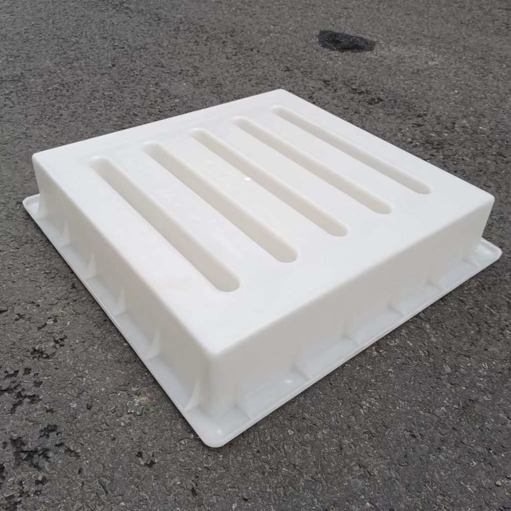 帶有五孔的雨水蓋方形塑料模具,尺寸為50x48x10.